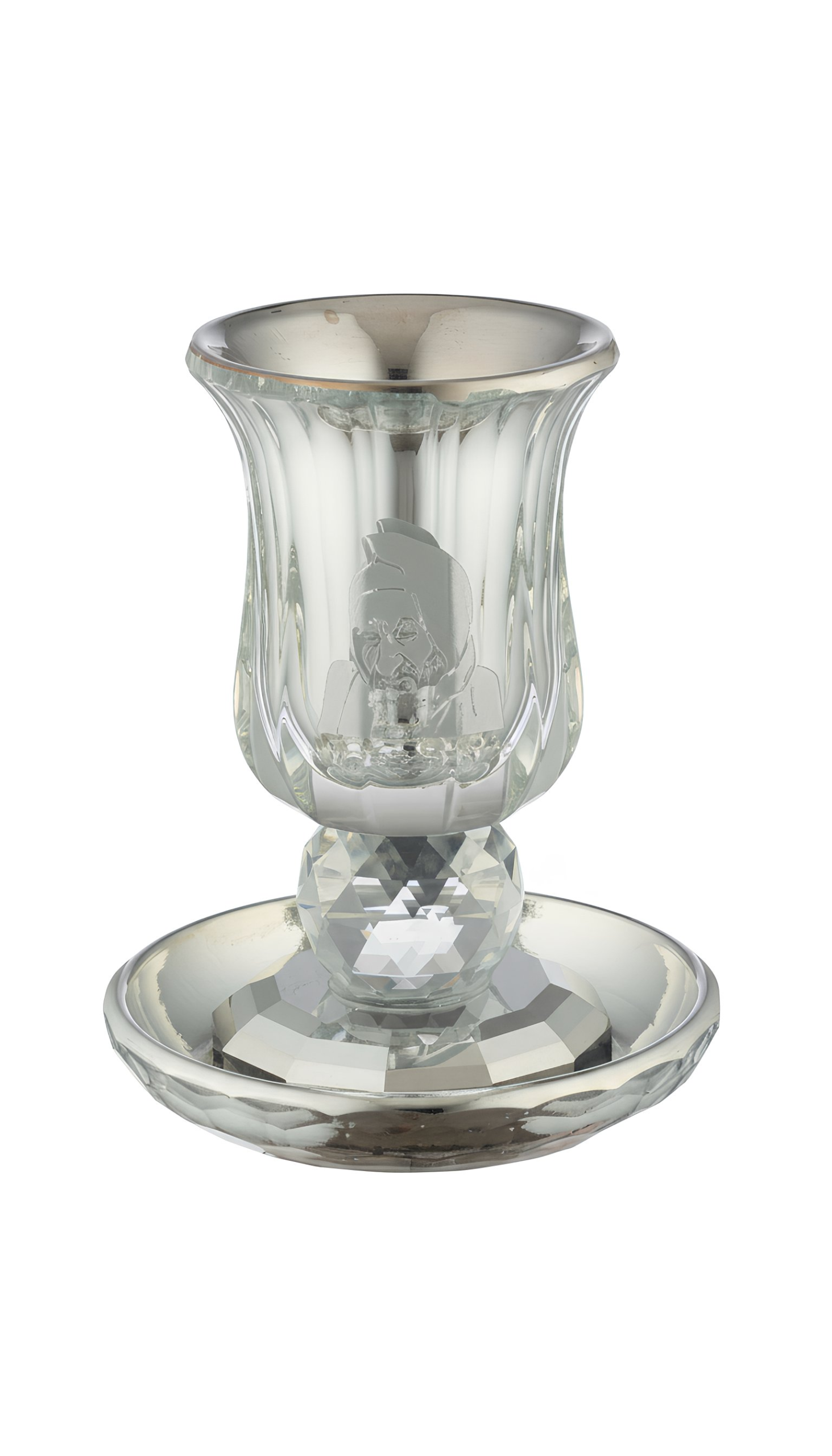 גביע קידוש יוקרתי בעיצוב אלגנטי ומרשים, עשוי מקריסטל שקוף באיכות גבוהה.