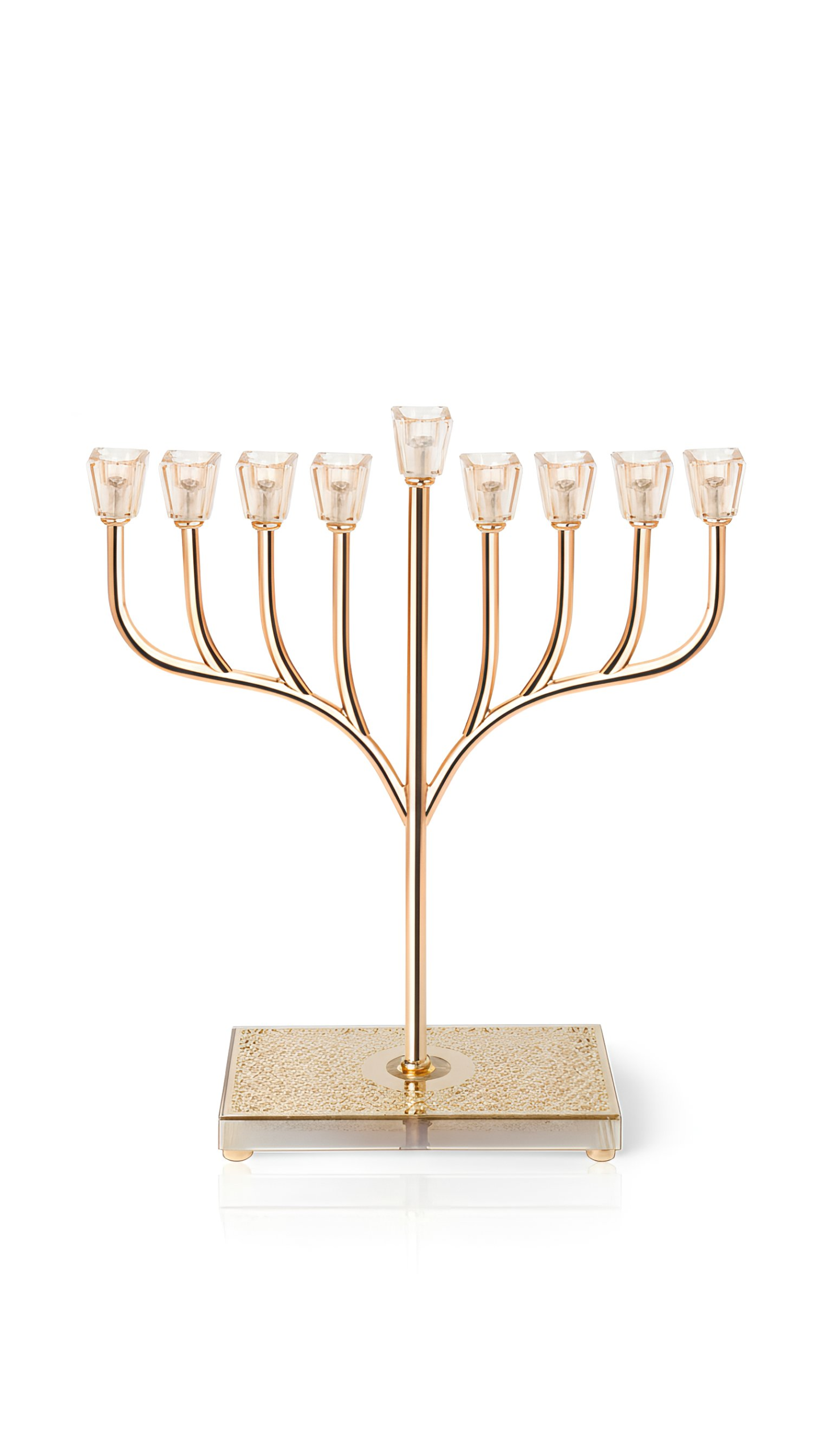 חנוכיית קריסטל מרשימה ומפוארת בגוון ייחודי שמביא איתו תחושה של מסורת, אור ורוממות.