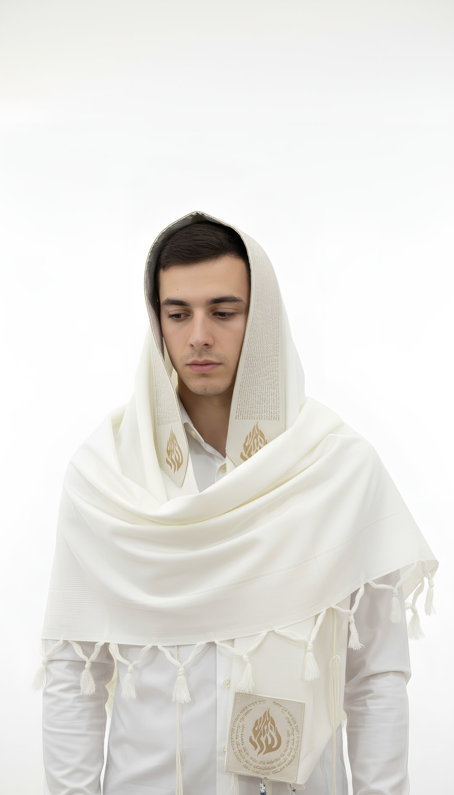 טלית מפוארת בעיצוב מרגש וייחודי, המשלבת קדושה, השראה ונוכחות מרשימה.