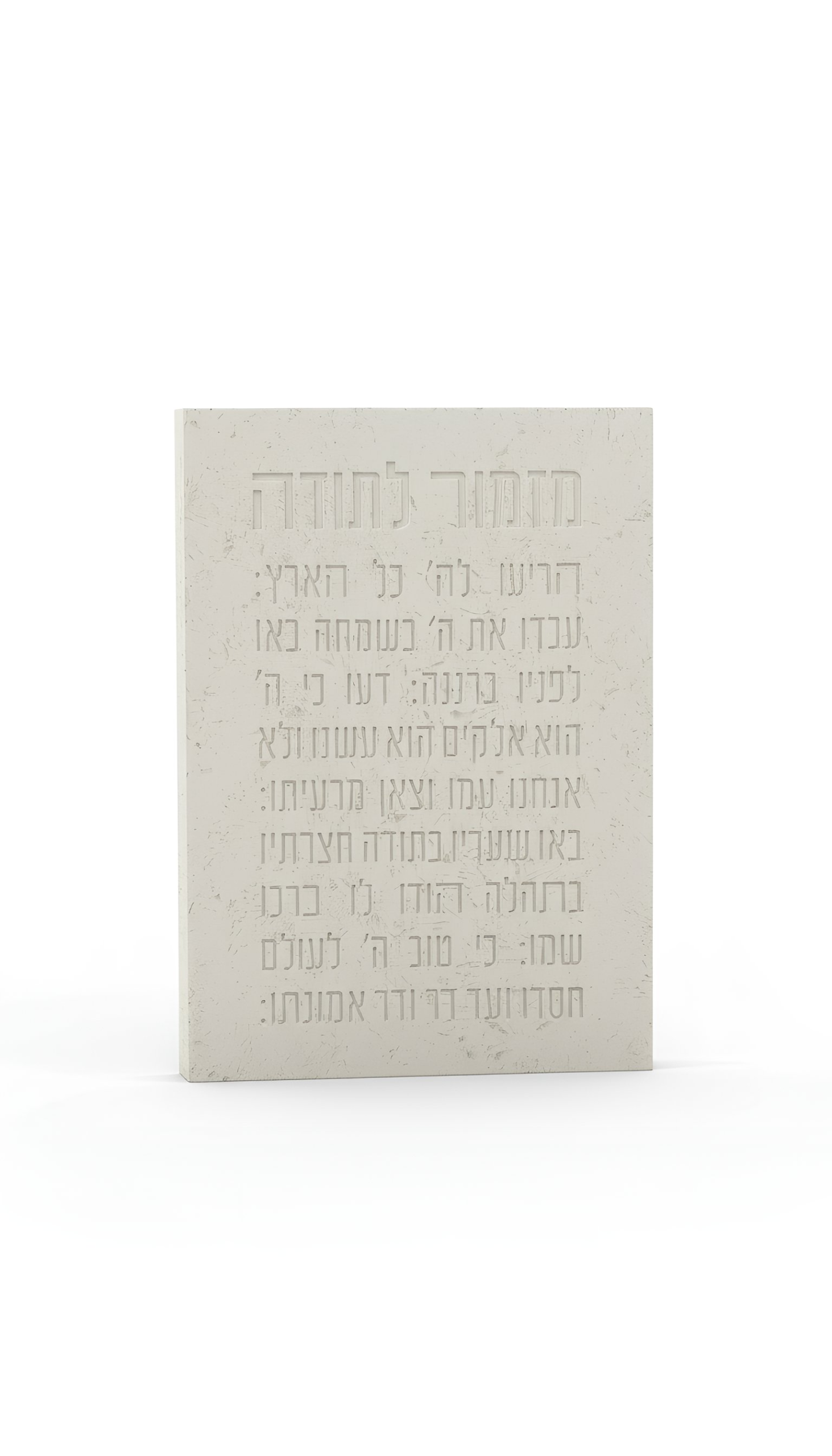 מזמור לתודה בעיצוב בטון ייחודי ומרשים, בגוון שמנת נקי ומודרני.
