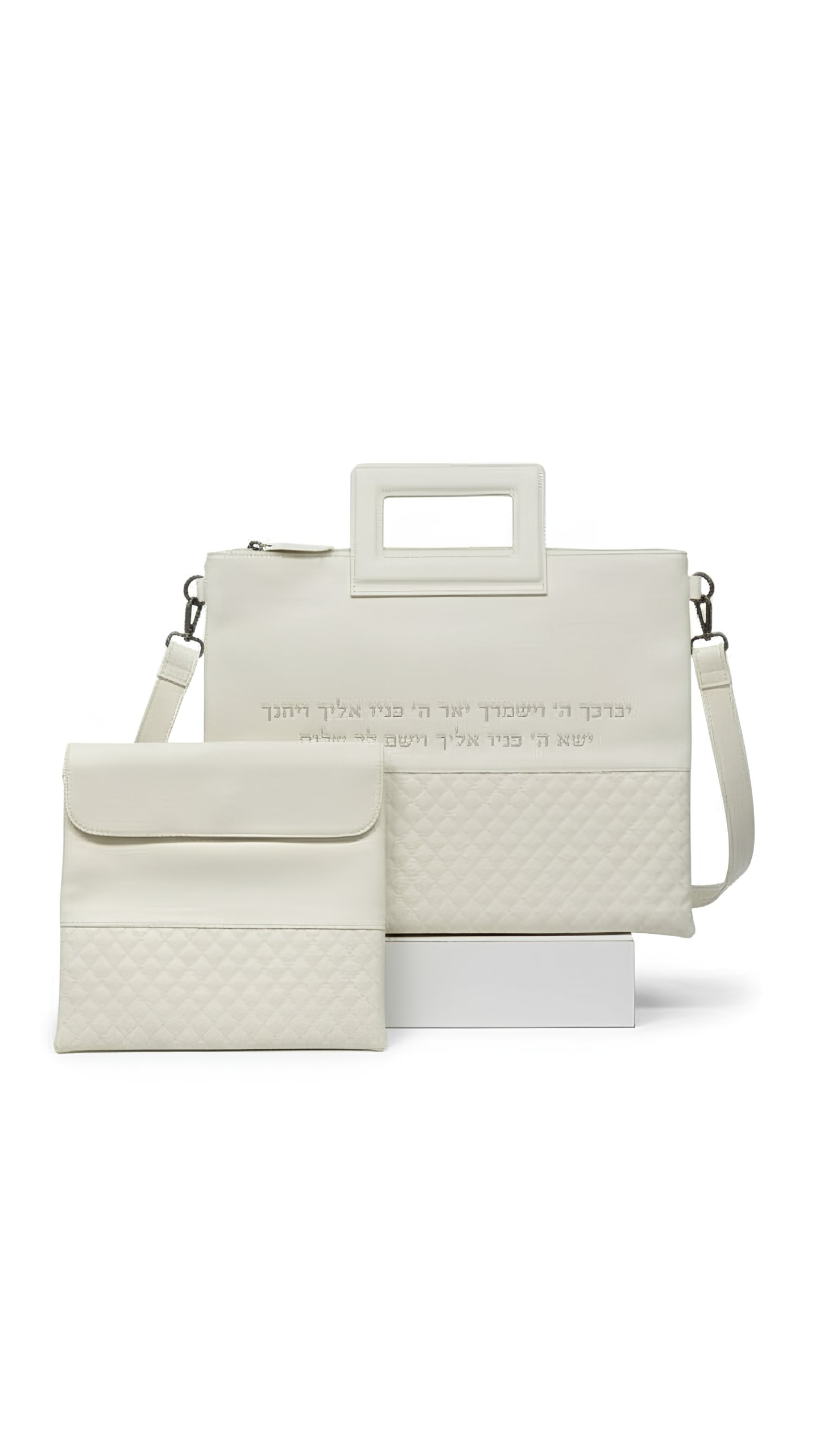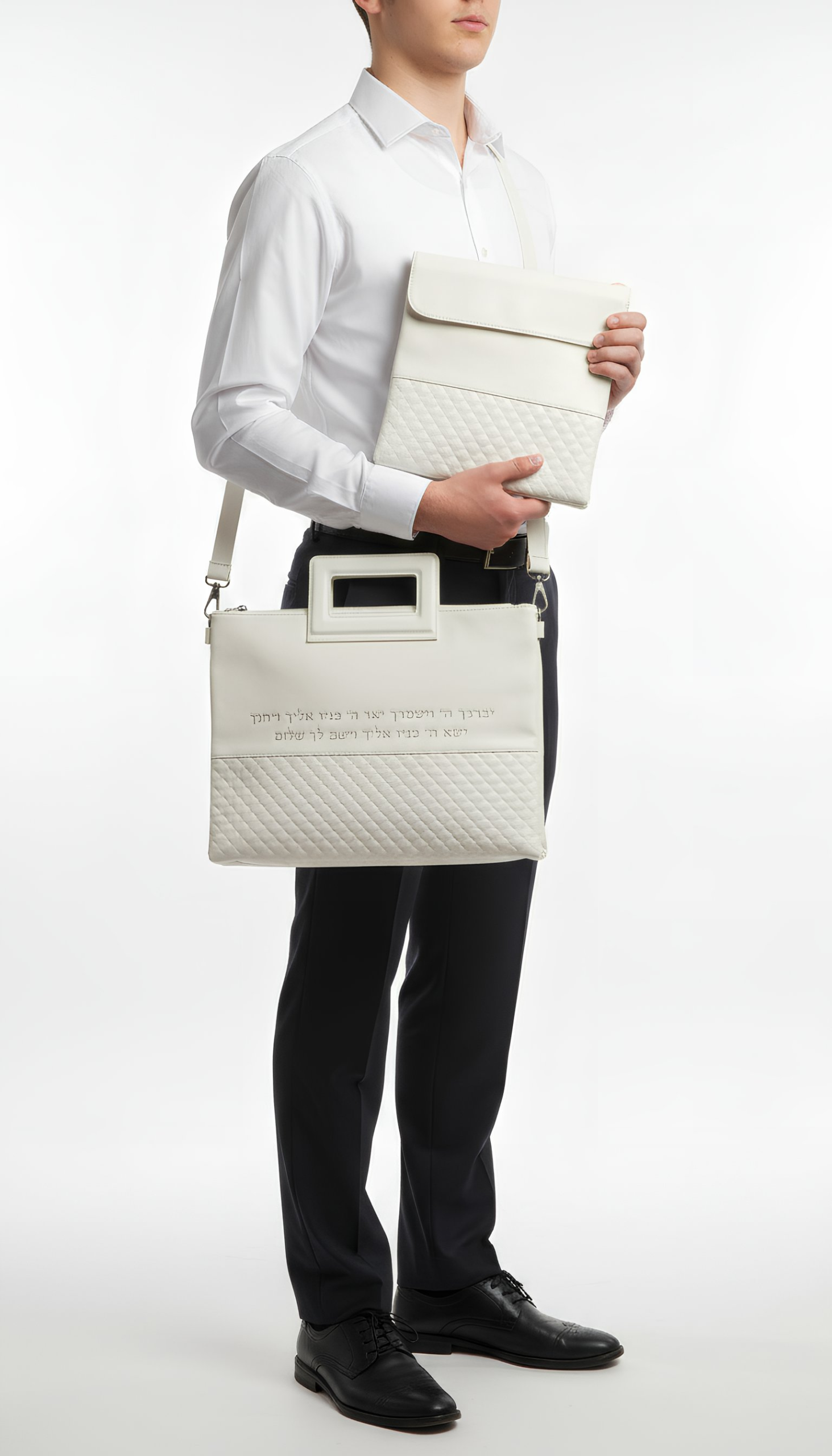 תיק טלית יוקרתי דמוי עור בצבע לבן עם הטבעה מובלטת